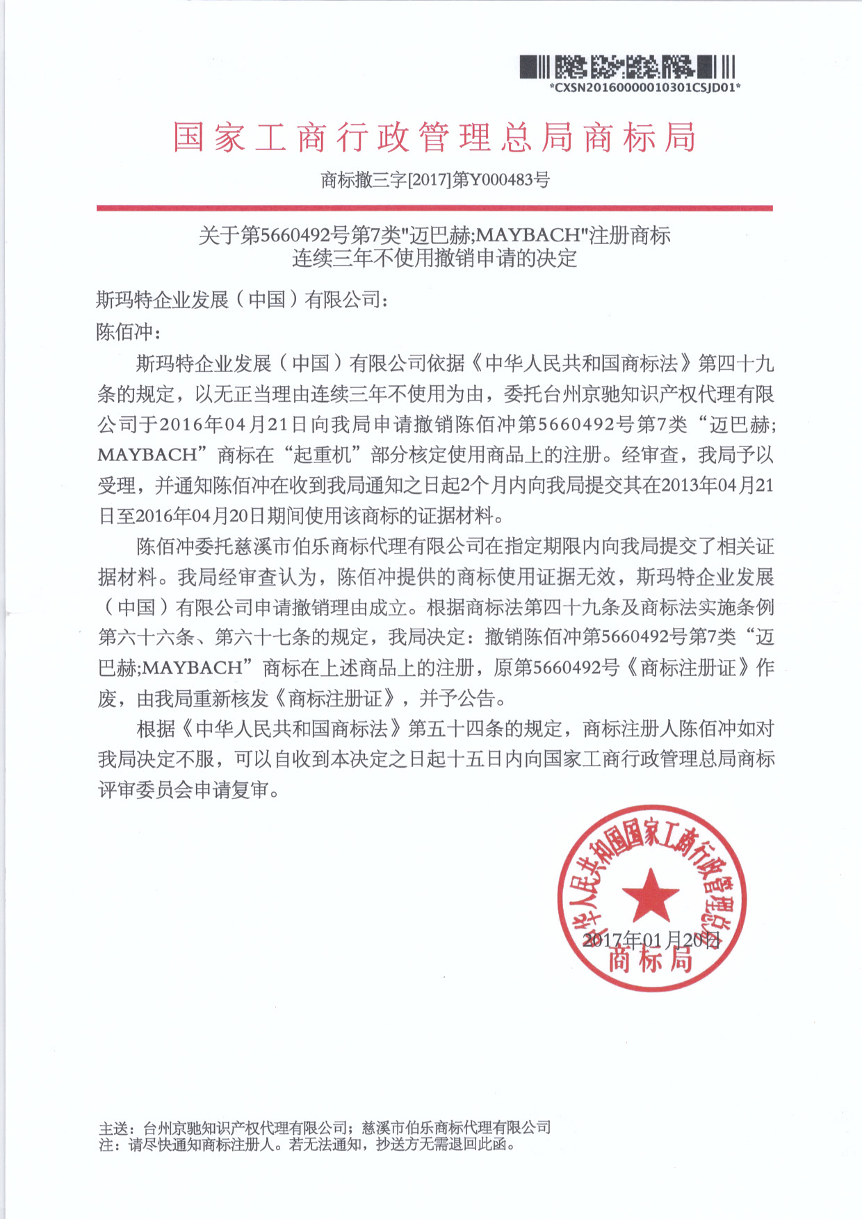 “邁巴赫”注冊商標撤三決定